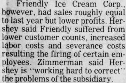 It turns out that Hershey was unloading Friendly’s during this time.